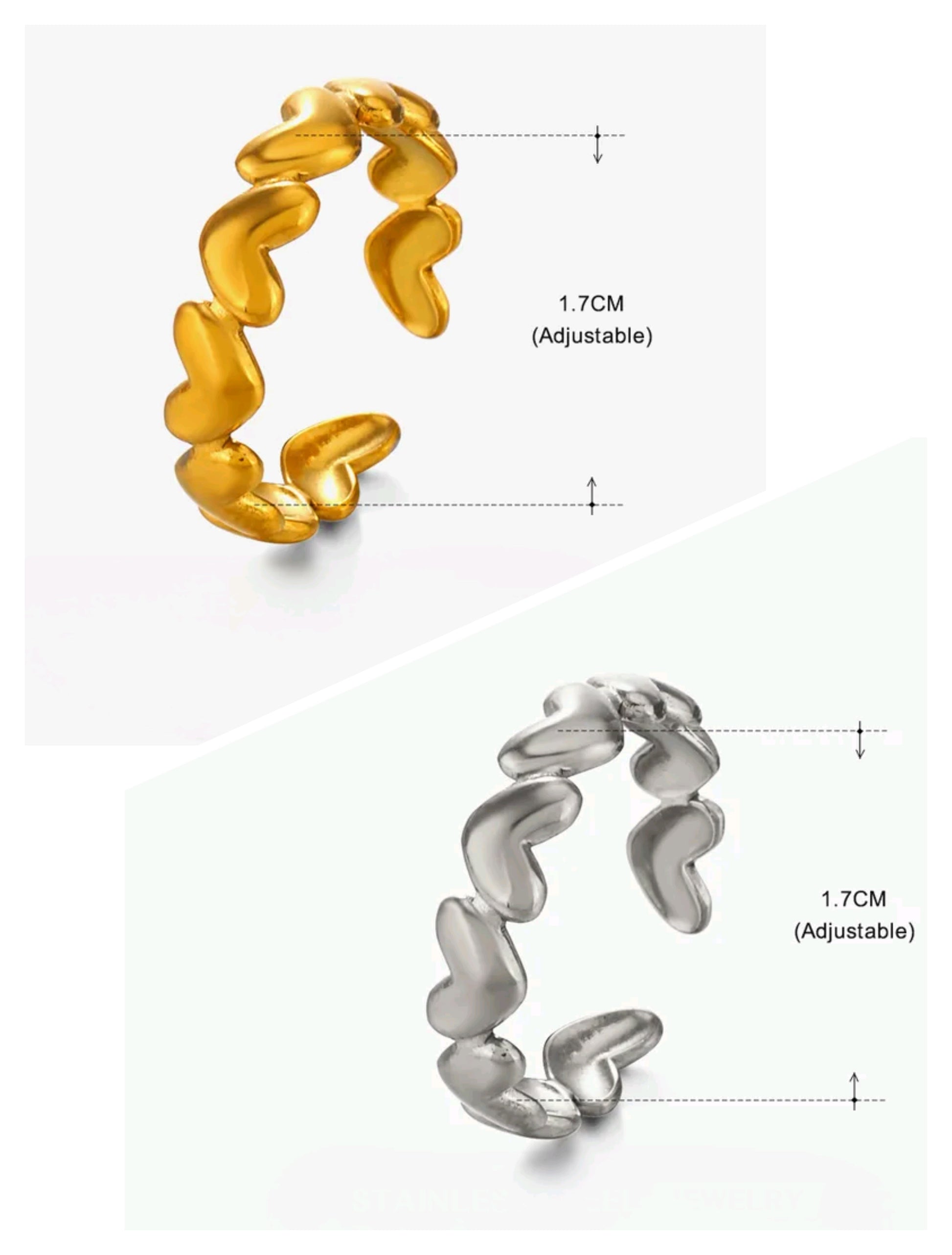 Anillo Corazones Ajustable de Acero Inoxidable