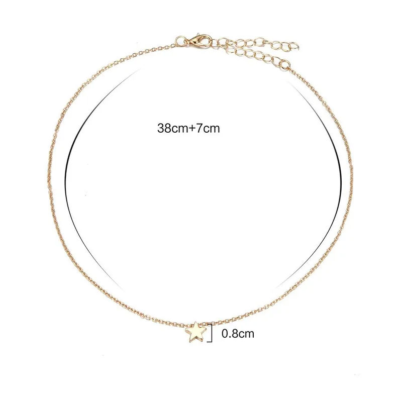 Agrega un toque de brillo sutil a tu look con este delicado collar de estrella. Su diseño minimalista y elegante lo convierte en el complemento ideal para cualquier ocasión, desde el día a día hasta eventos especiales. Fabricado en aleación de alta calidad y chapado en oro de 14K, combina estilo y durabilidad en una sola pieza.